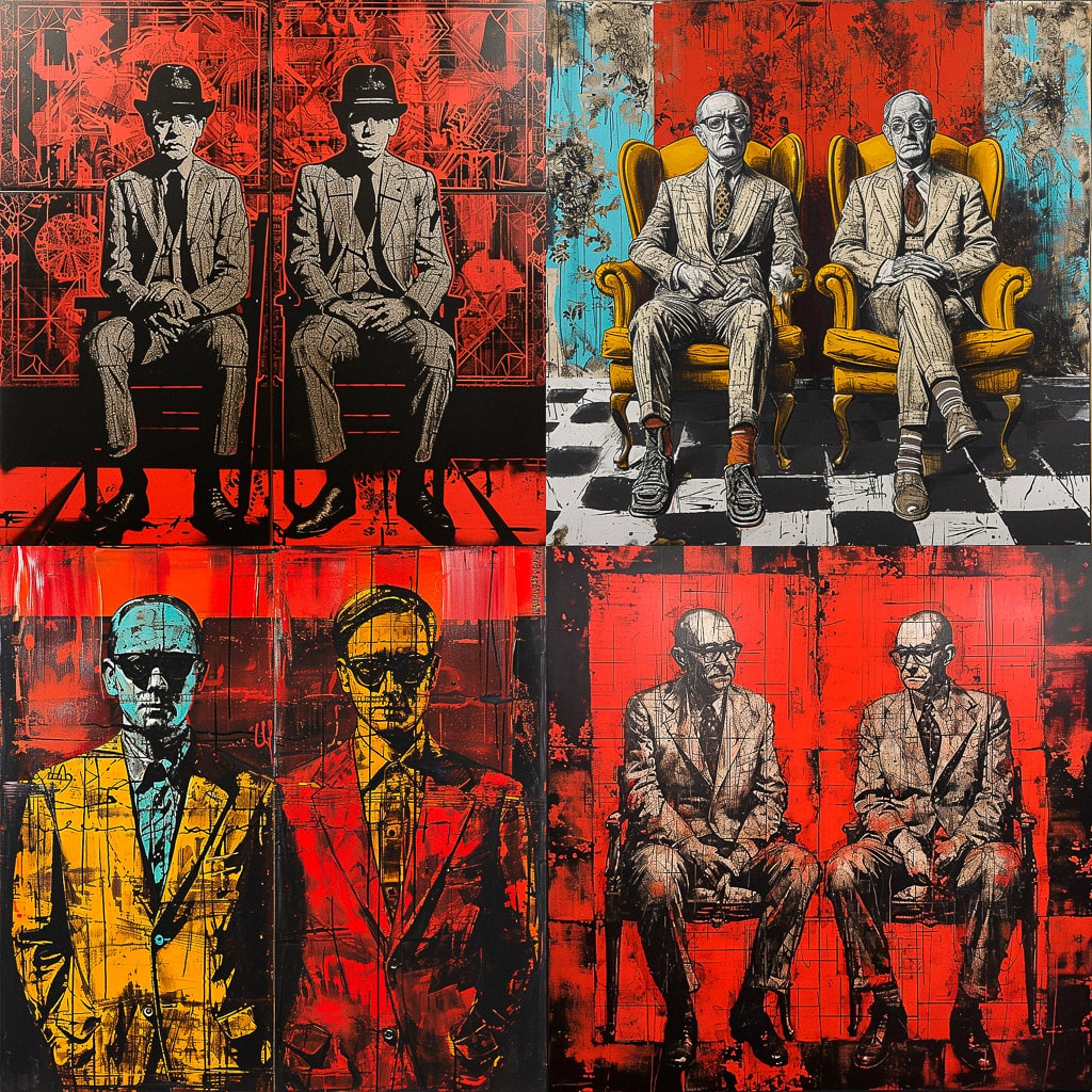 Gilbert and George известны своими яркими и запоминающимися образами, которые отражают их взгляды на жизнь и общество. Их работы часто имеют социальный подтекст и вызывают у зрителей размышления о важных вопросах.