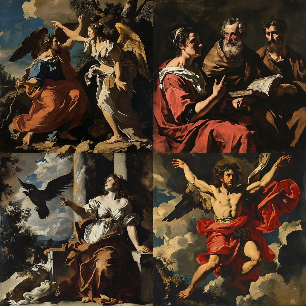 Гверчино известен своими мифологическими и библейскими сюжетами, которые он изображал с большой эмоциональной силой. Его картины отличаются изысканностью и элегантностью, а также умением передать сложные психологические состояния персонажей.