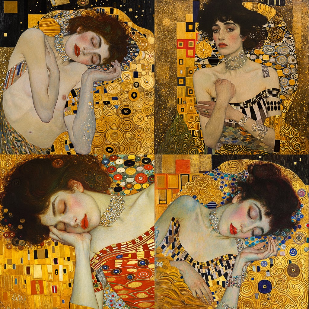 В творчестве художника можно увидеть влияние символизма и стилизации форм. Он мастерски использовал золотые и серебряные оттенки, что придавало его произведениям особую роскошь и изысканность. Климт также известен своими портретами и пейзажами, в которых он стремился передать не только внешнюю красоту, но и внутренний мир человека.