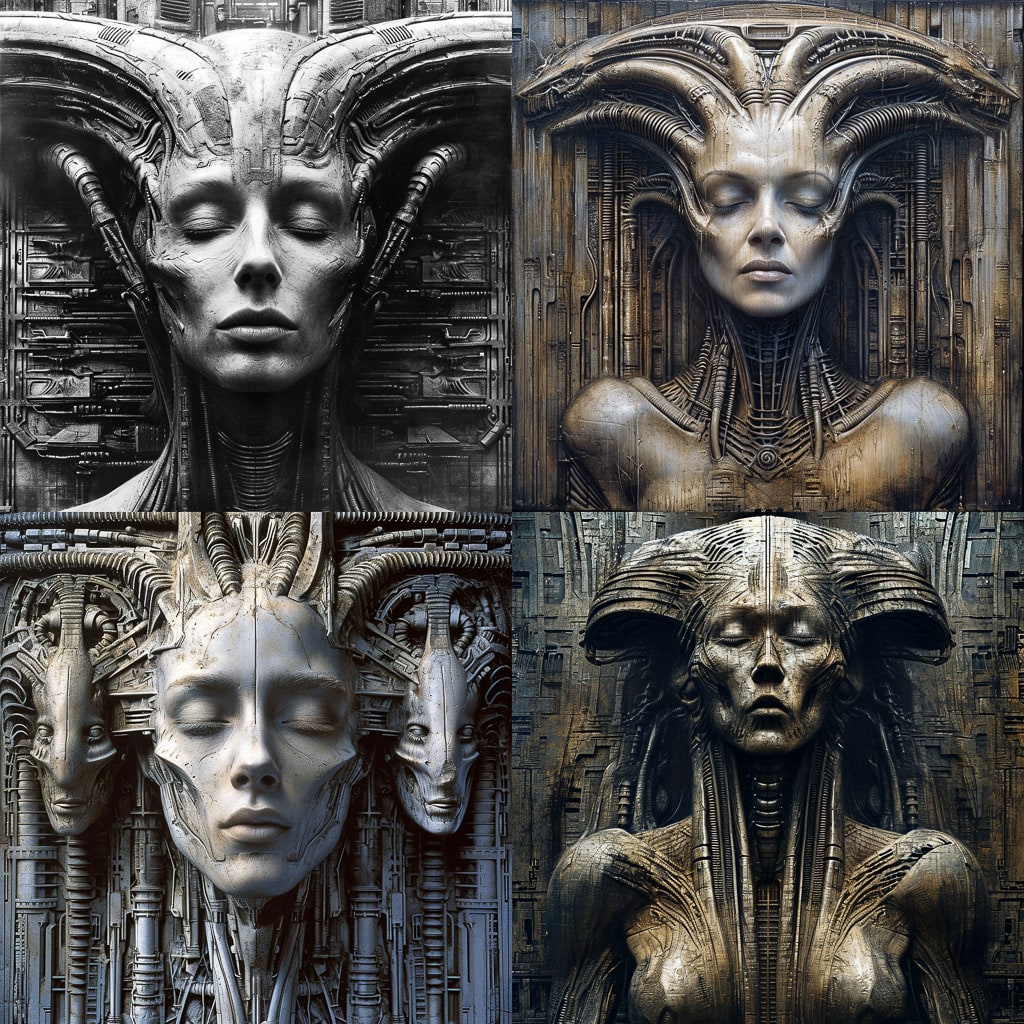 Ханс Руди Гигер — один из самых ярких представителей сюрреализма и биопанка. Его работы отличаются мрачной атмосферой, органическими и механическими формами, которые переплетаются в причудливых и тревожных образах. Гигер известен своими иллюстрациями к фильму «Чужой», которые стали культовыми.
