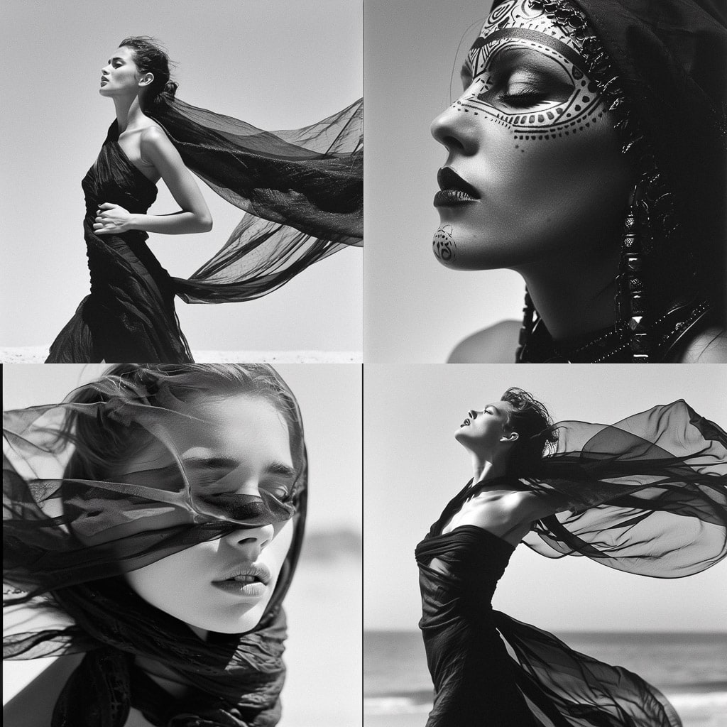 В своих снимках Herb Ritts часто использует нестандартные ракурсы и композиции, что придаёт его фотографиям особую динамику и выразительность. Он не боится экспериментировать с освещением и цветами, создавая уникальные и запоминающиеся образы.