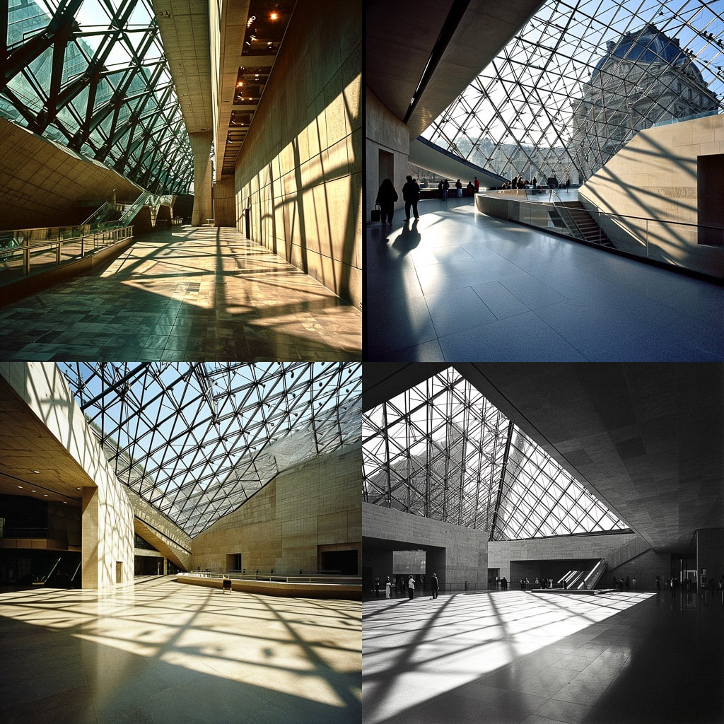 Пей известен своими инновационными подходами к форме и структуре. Он использовал нестандартные материалы и формы, что придавало его работам особую выразительность. Среди наиболее известных проектов Пея — стеклянная пирамида Лувра в Париже и Национальный центр космических исследований в Ле-Бурже.