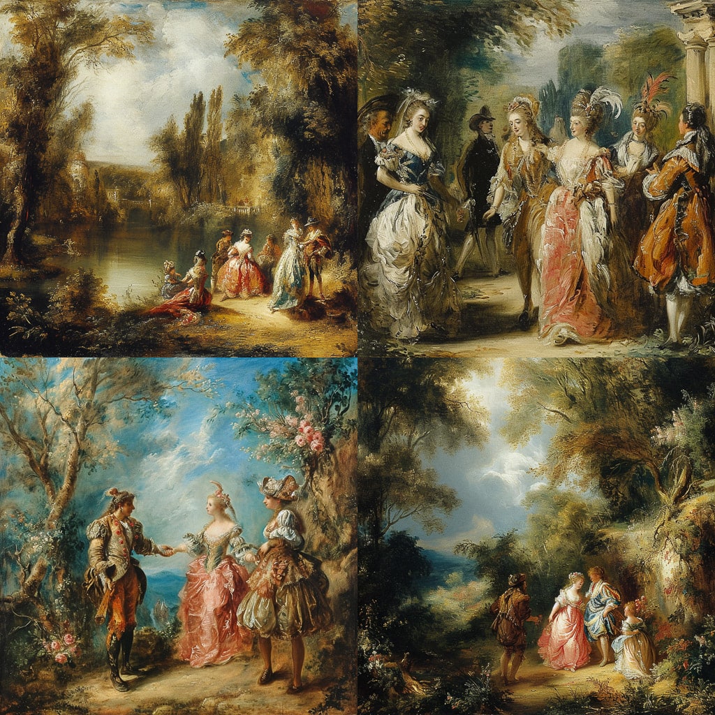 Художник известен своими живописными сценами из жизни аристократии, которые отличаются непринуждённостью и элегантностью. В его работах можно увидеть влияние фламандской живописи, а также элементы барокко. Однако Ватто сумел создать свой уникальный стиль, который стал символом эпохи.