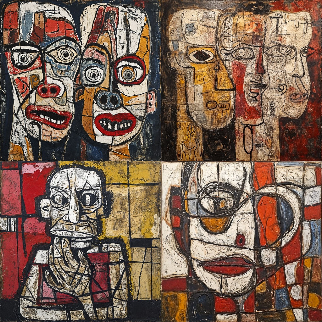 Работы Дюбуффе отличаются яркими цветами, динамичными формами и спонтанностью исполнения. Он часто использовал бытовые предметы и мусор в своих картинах, что придавало им особую атмосферу и глубину. Его произведения сочетают в себе элементы абстракции и фигуративности, создавая уникальные визуальные образы.