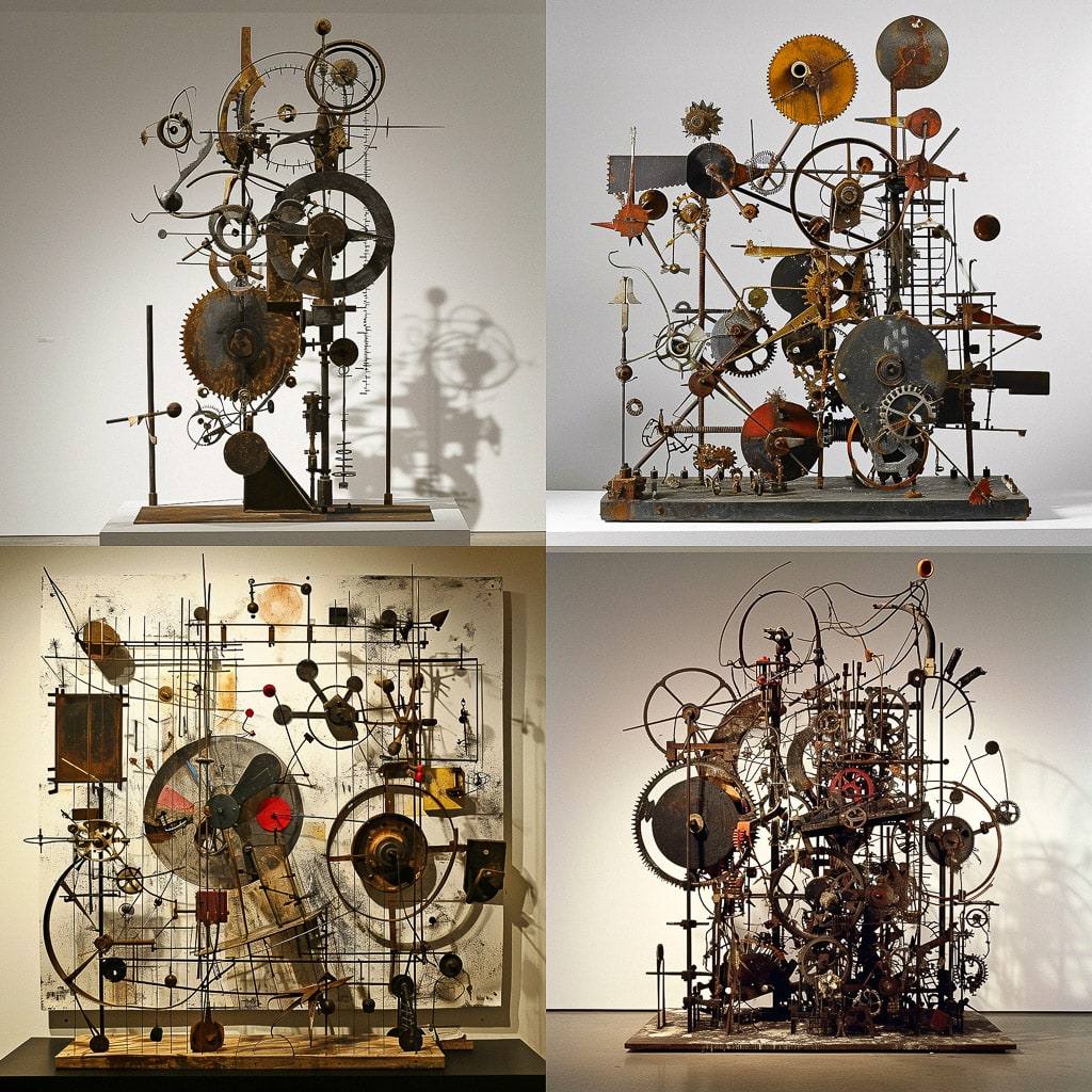 Жан Тингели — известный швейцарский художник, один из основателей кинетического искусства. Его работы отличаются использованием механизмов и подвижных элементов, что придаёт им динамику и интерактивность. Тингели создавал инсталляции и скульптуры, которые реагировали на окружающую среду и движение, что делало их живыми и непредсказуемыми.