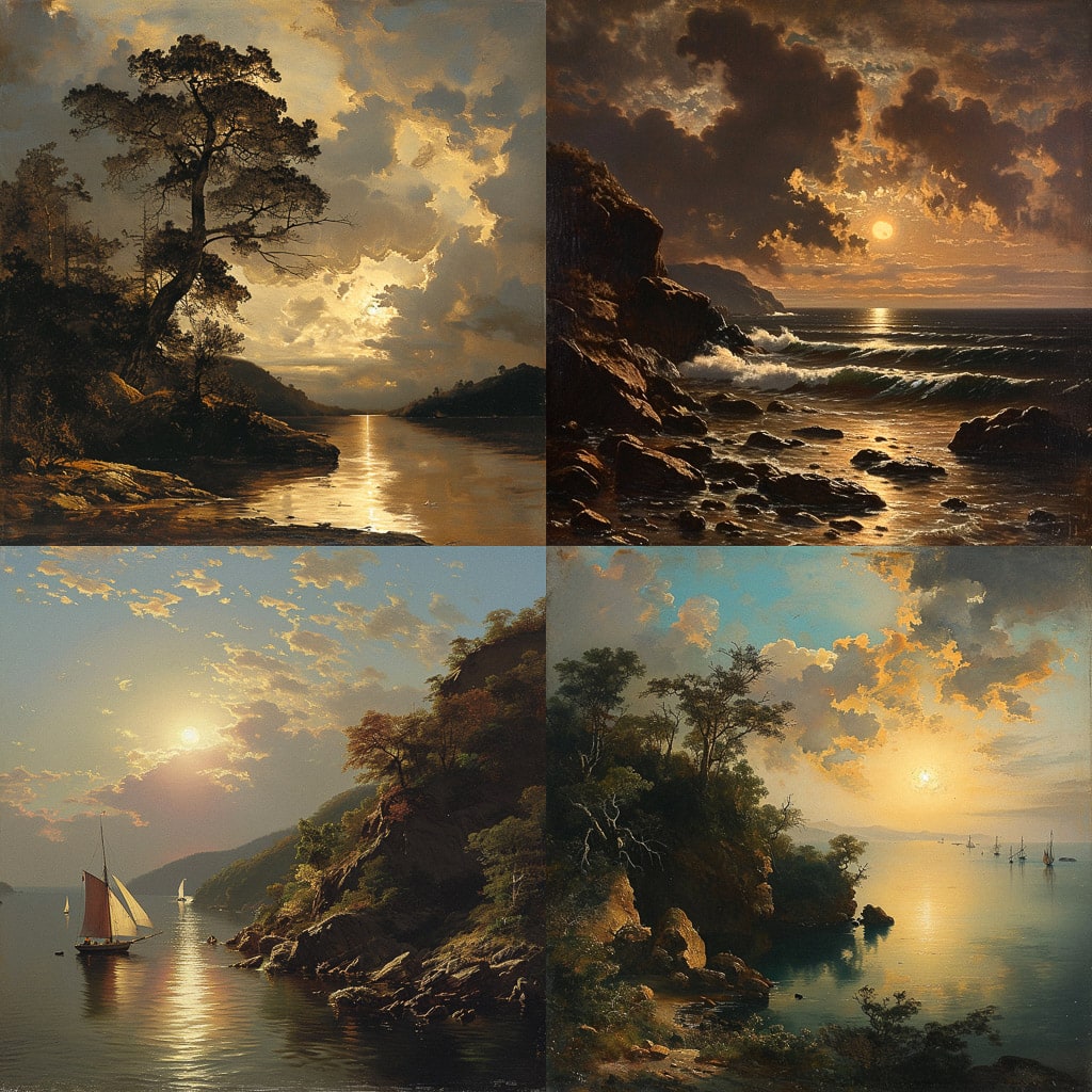 Джон Фредерик Кенсетт — американский художник XIX века, один из представителей школы реки Гудзон. Он известен своими пейзажами, на которых изображены живописные виды природы. В работах Кенсетта преобладают тёплые тона, особенно оттенки жёлтого и оранжевого, что придаёт его картинам особую атмосферу.