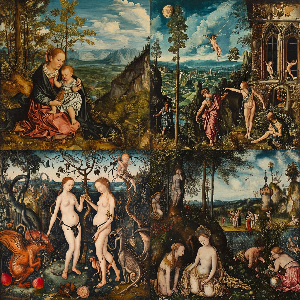 Художник писал портреты, религиозные и мифологические картины. Его произведения отличаются яркими красками и выразительными образами. Кранах Младший мастерски передавал характеры и эмоции персонажей.