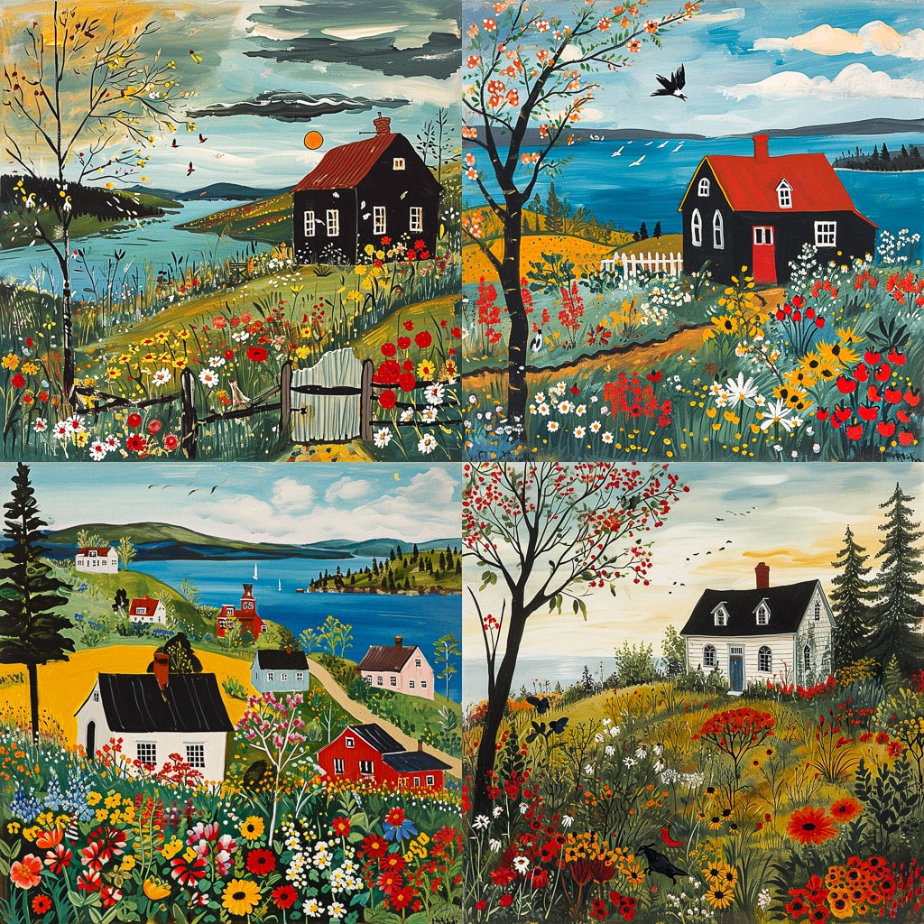 Работы Мод Льюис наполнены теплом и уютом. Она использовала насыщенные цвета и простые формы, чтобы передать свои чувства и эмоции. Её картины часто изображают сцены из повседневной жизни, пейзажи и цветы.