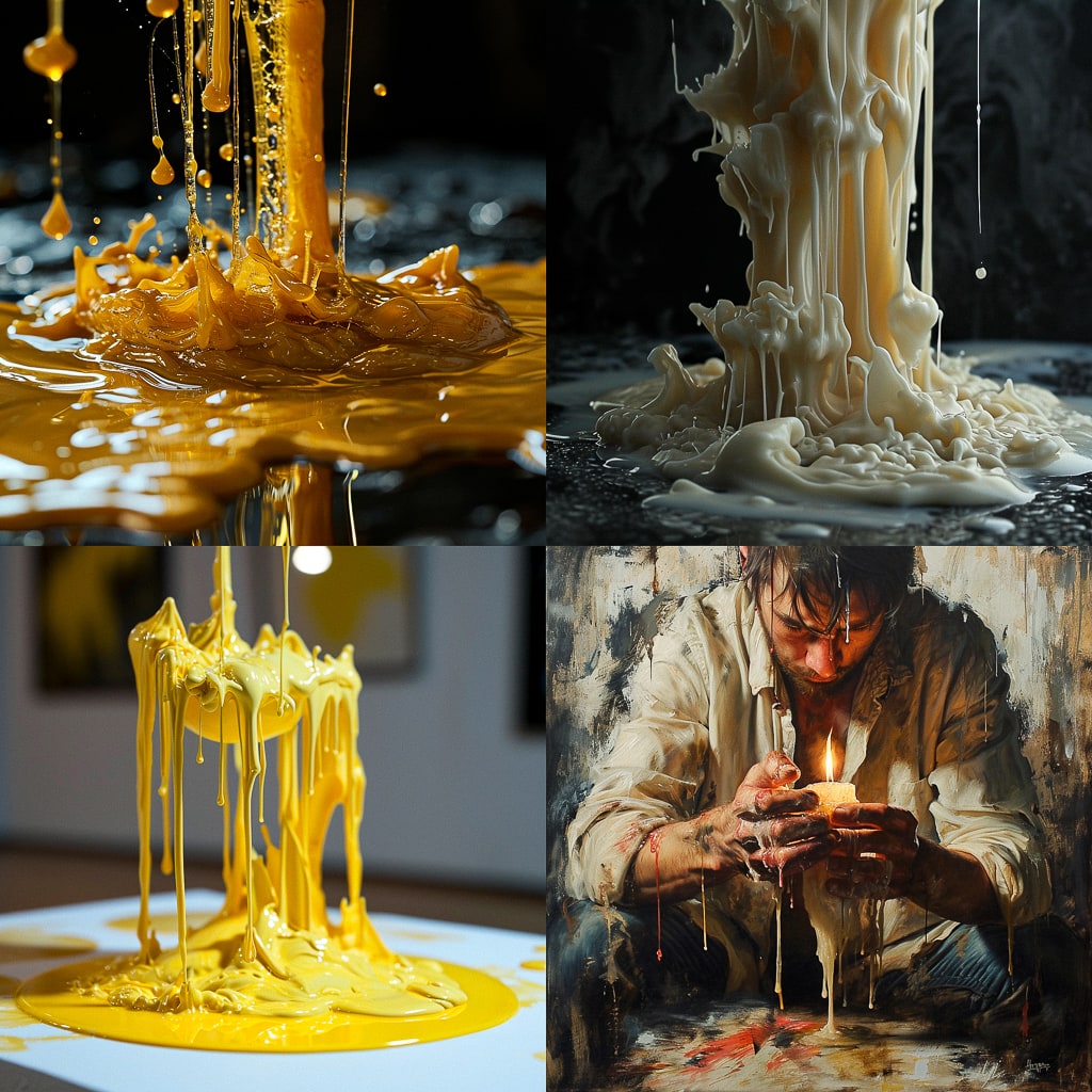 «Melting wax» (тающий воск) — это техника, которая позволяет передать мягкость и текучесть материала. Она может быть использована в различных видах искусства, включая скульптуру, живопись и графику.
