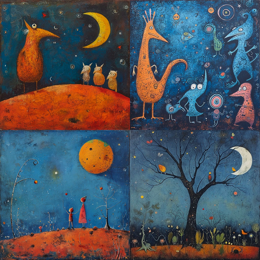 Художник использует разнообразные техники, включая рисунок, живопись и коллаж, чтобы передать свои мысли и чувства. Его работы часто содержат элементы юмора и иронии, что делает их не только визуально привлекательными, но и глубокими по смыслу.