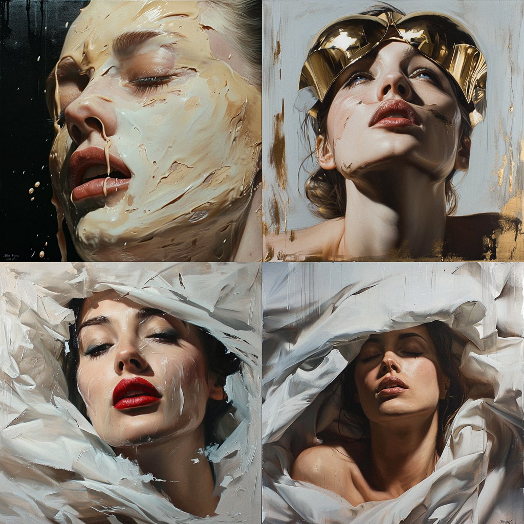 Художник использует разнообразные техники, включая масло и акрил, чтобы создать глубину и текстуру своих произведений. Его композиции часто включают динамичные позы и выразительные лица, что придаёт картинам эмоциональную насыщенность.
