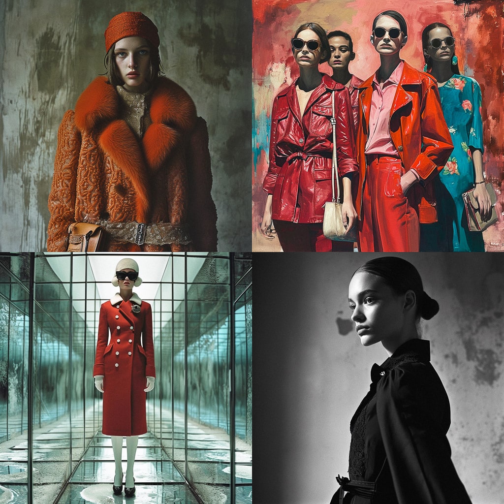Её работы отличаются оригинальностью и смелостью, что позволяет создавать уникальные и запоминающиеся образы. Миучча Прада не боится экспериментировать с материалами и формами, что делает её коллекции особенно выразительными. Она уделяет большое внимание деталям, создавая не просто одежду, но настоящие арт-объекты.