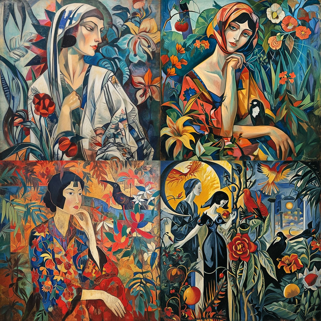 В её творчестве гармонично сочетаются элементы народного искусства, символизма и футуризма. Гончарова экспериментировала с цветом и формой, создавая уникальные композиции, полные энергии и динамики.