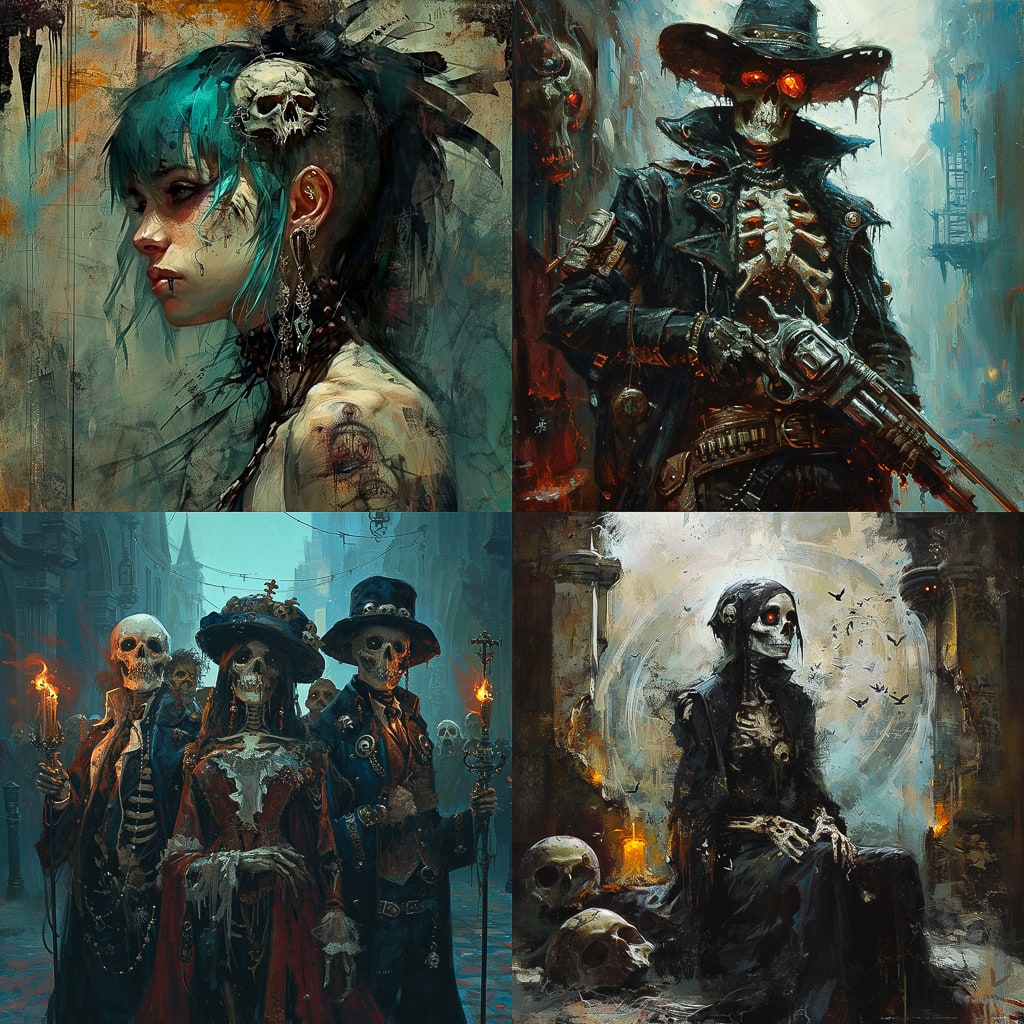 Necropunk — это жанр, который сочетает в себе элементы киберпанка и постапокалиптической эстетики. Он рисует мрачные картины будущего, где технологии сосуществуют с разрушением и смертью. В этом жанре можно увидеть мрачные городские пейзажи, киборгов и мутантов, а также атмосферу безысходности и отчаяния.