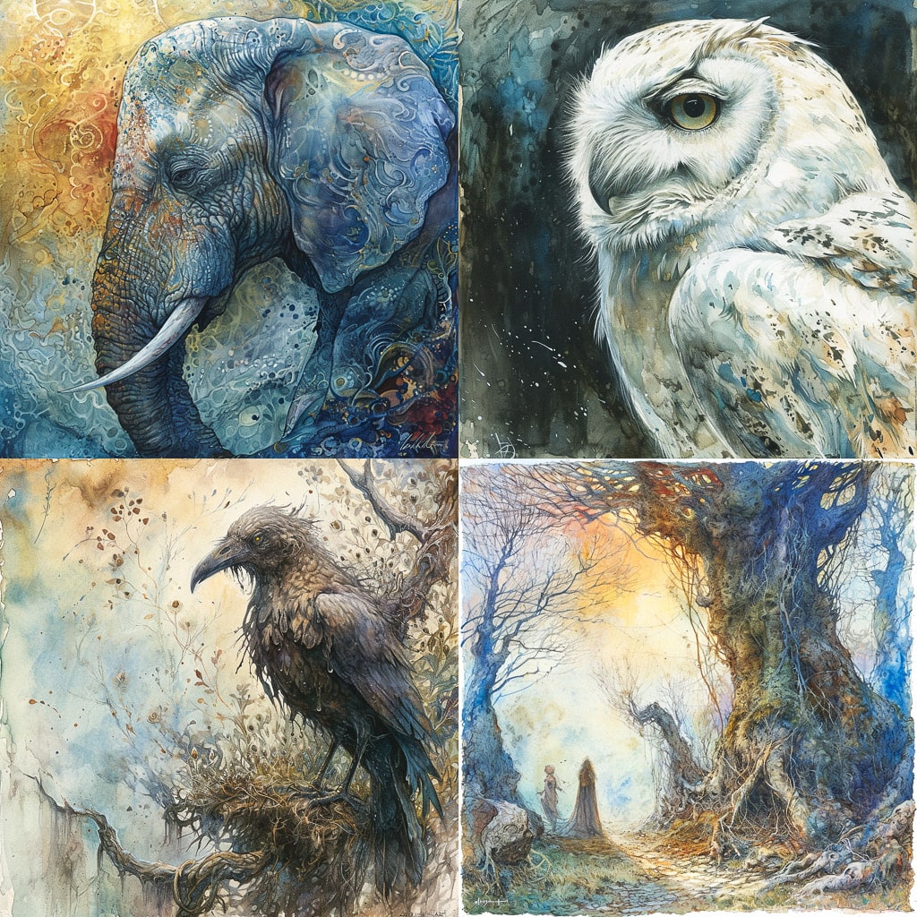 Художник использует различные техники, включая масло и акрил, чтобы достичь нужной текстуры и глубины цвета. Его композиции часто имеют сложную структуру, где элементы взаимодействуют друг с другом, создавая гармоничное целое.