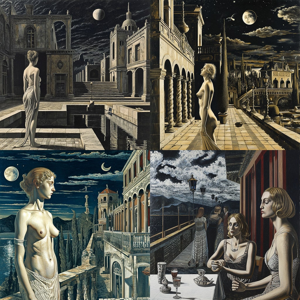 Дельво мастерски использует цвет и форму, чтобы передать свои идеи и эмоции. Его картины часто наполнены символами и образами, которые заставляют зрителя задуматься о глубинном смысле происходящего. Художник умело сочетает реалистичные детали с фантастическими элементами, создавая уникальные и запоминающиеся композиции.