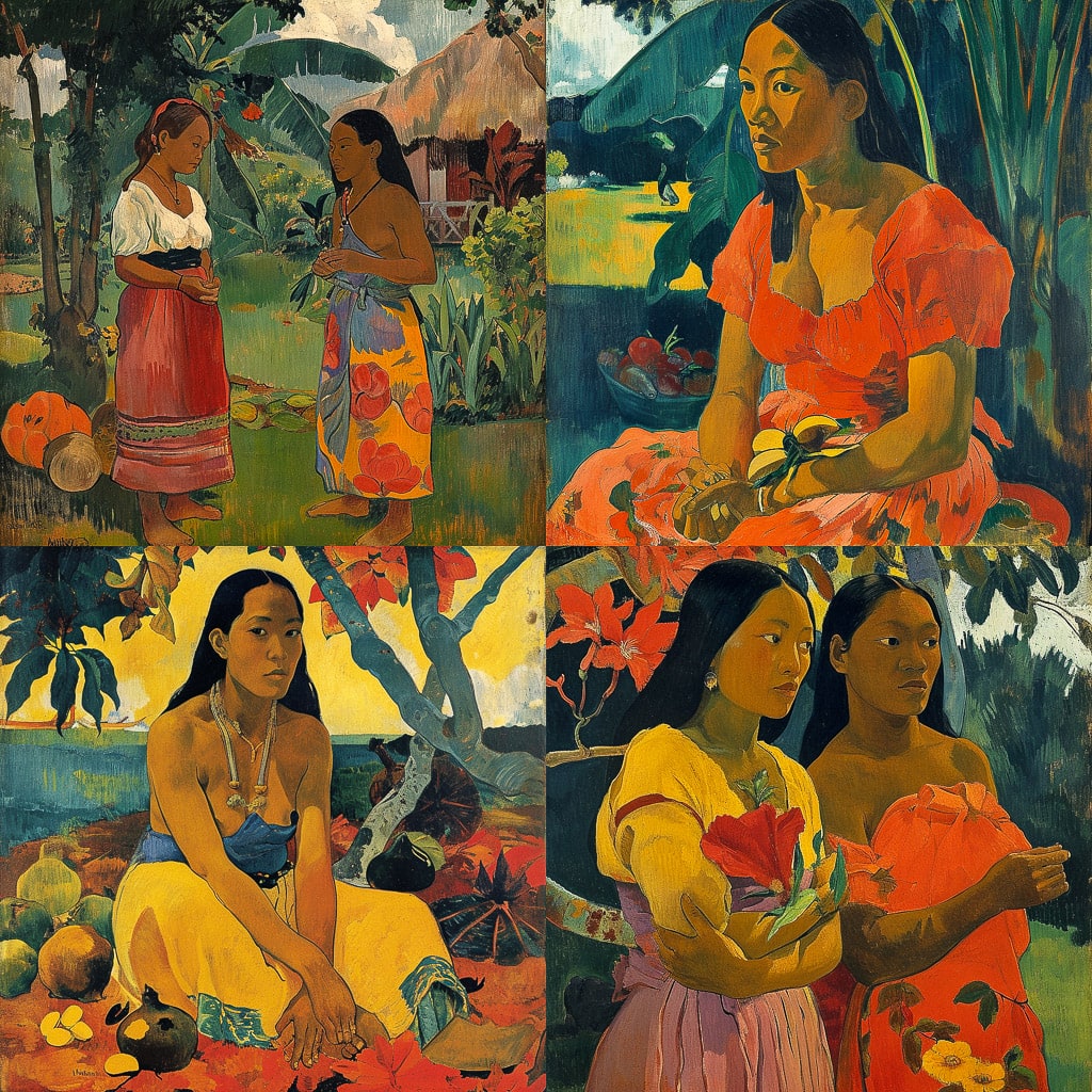 Художник черпал вдохновение в культуре и природе тропических стран. Его картины часто изображают сцены из жизни на Таити, где Гоген провёл значительную часть своей жизни. Он искал в этих местах не только новые сюжеты, но и возможность освободиться от европейских культурных и социальных ограничений.