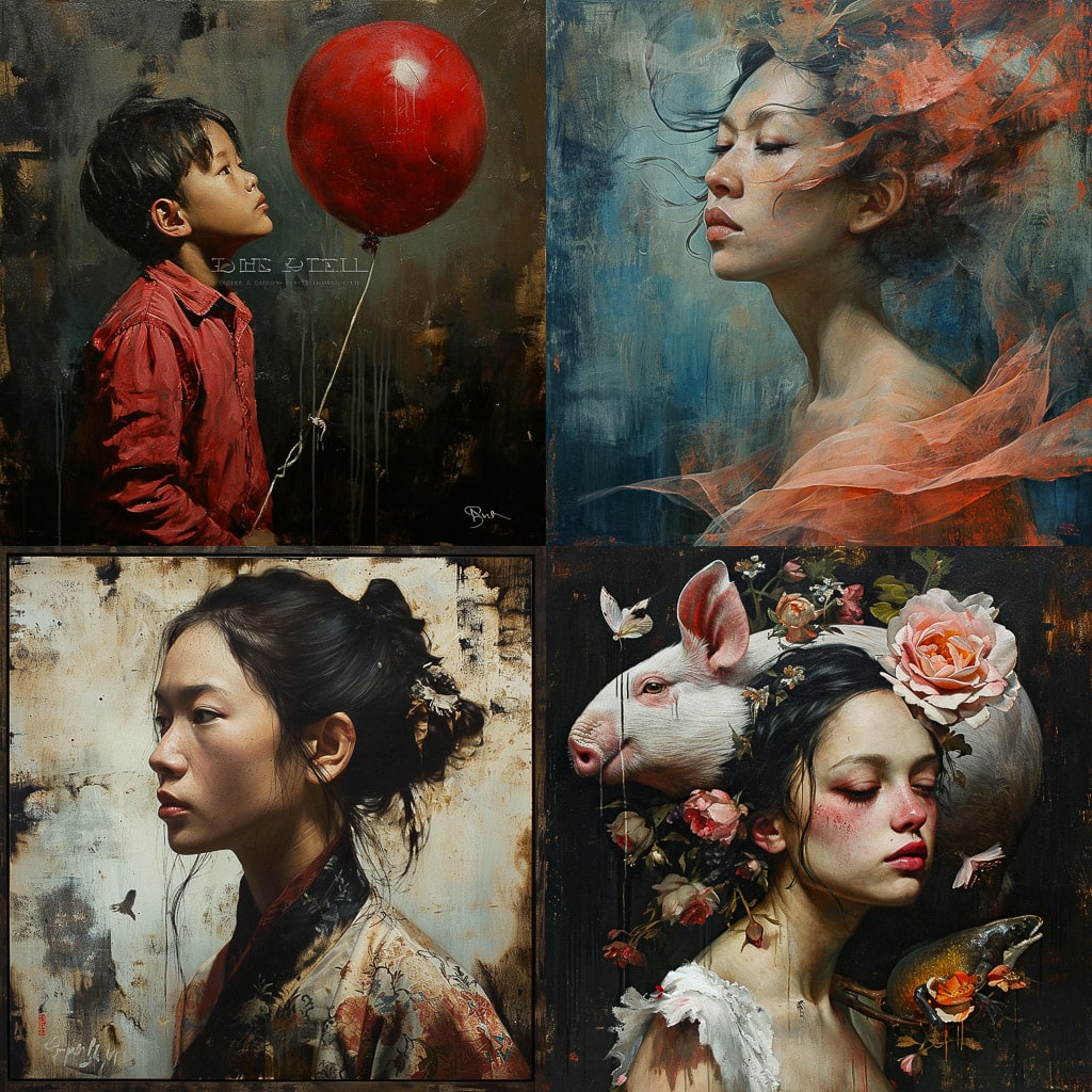 Цветовая палитра художника богата и насыщена, что придаёт его картинам особую выразительность. Лунг не боится экспериментировать с формами и композициями, что делает его работы интересными и многогранными.