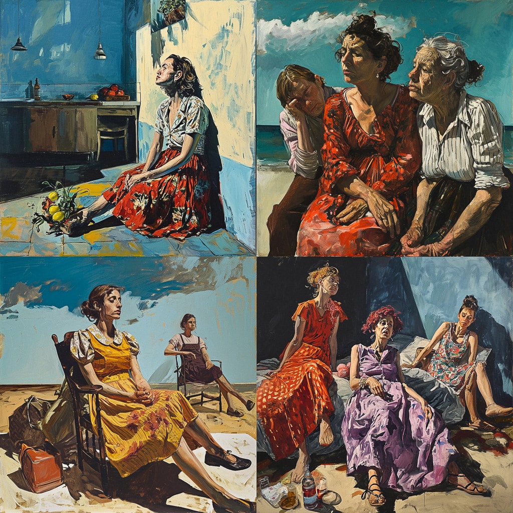 В её работах часто можно увидеть элементы сюрреализма и символизма, которые помогают создать атмосферу загадочности и мистики. Рего исследует темы женской идентичности, материнства и семейных отношений, придавая своим картинам особую эмоциональную насыщенность.