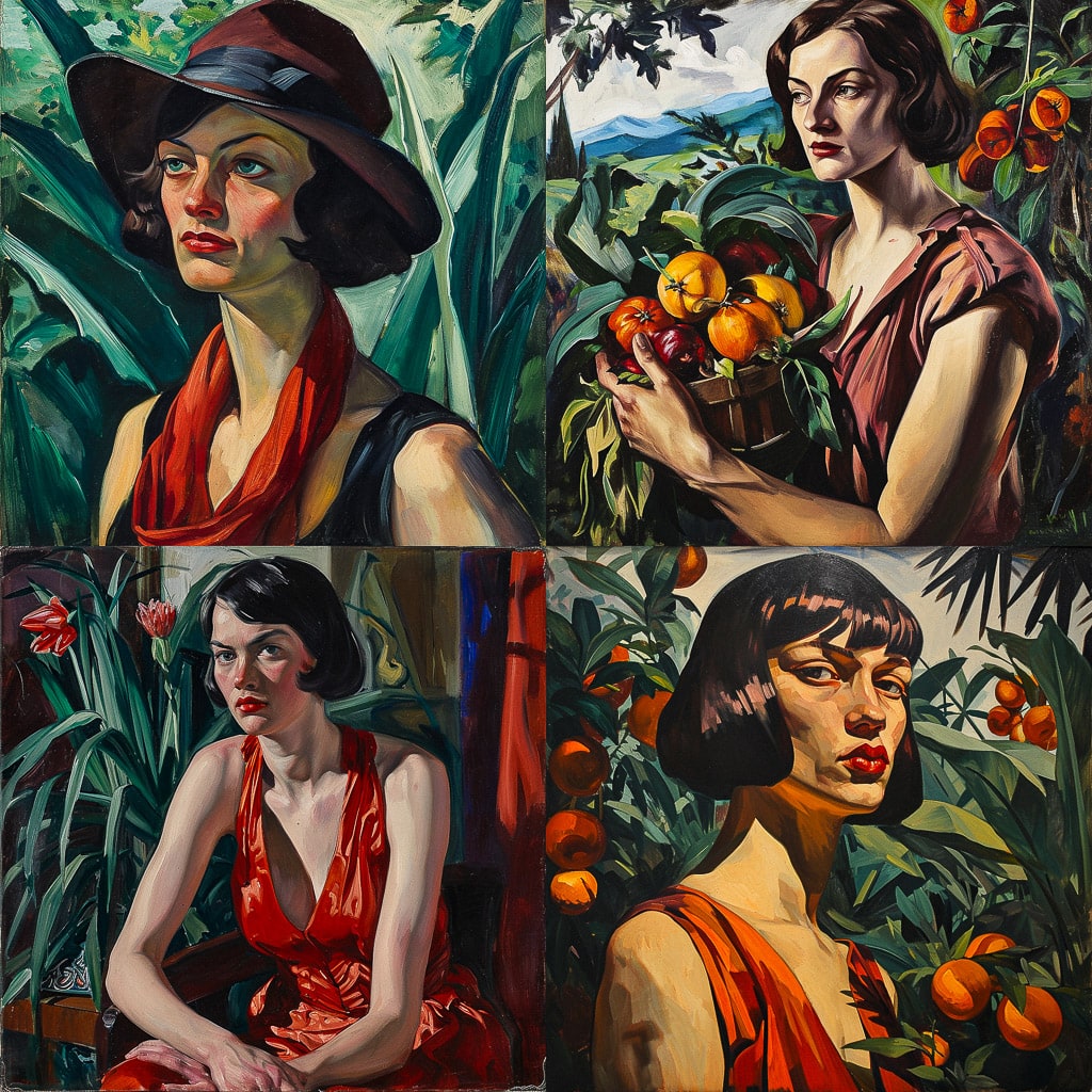В своих картинах Пруденс Хьюард уделяет особое внимание деталям и цветовой гамме, создавая гармоничные и насыщенные композиции. Она мастерски передаёт свет и тень, что придаёт её работам объём и глубину.