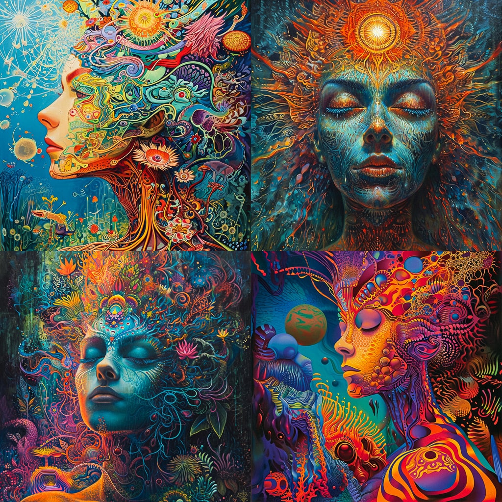 Psychedelic art стремится передать изменённое состояние сознания, создавая визуальные иллюзии и погружая зрителя в необычный мир. В этом направлении используются различные техники, такие как коллажи, принты, граффити и цифровая графика.