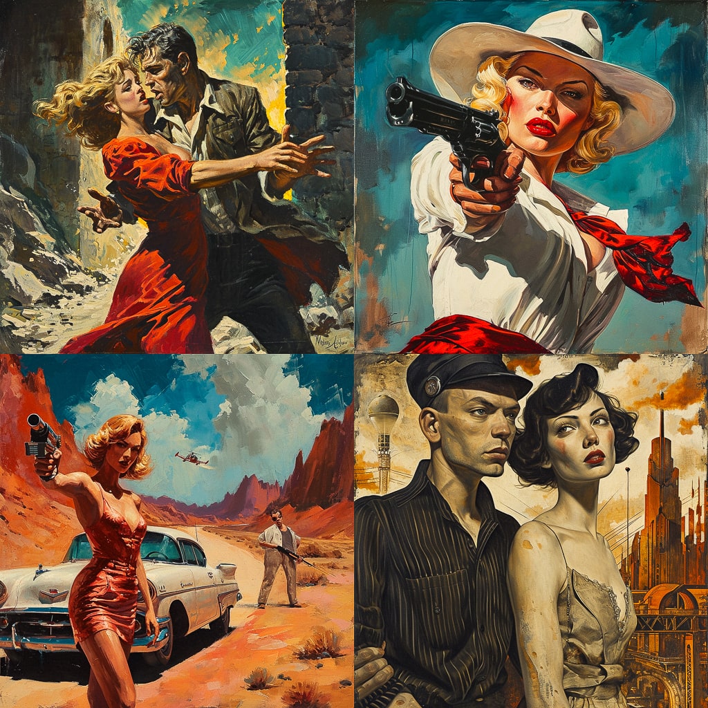 Pulp art отличается яркими красками, динамичными композициями и выразительными персонажами. Художники, работающие в этом стиле, используют разнообразные техники, включая рисунок, живопись и коллаж, чтобы создать захватывающие и эмоционально насыщенные произведения.