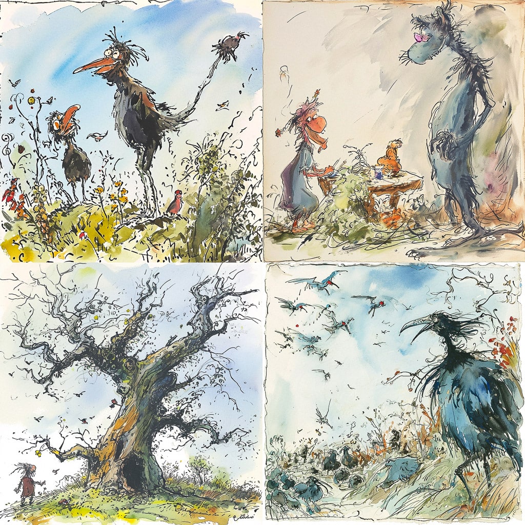 Квентин Блэйк — известный британский художник и иллюстратор, мастер детской литературы. Его работы отличаются яркими красками, причудливыми персонажами и остроумными сюжетами. Блэйк создаёт иллюстрации, которые оживляют сказки и истории, делая их понятными и интересными для детей.