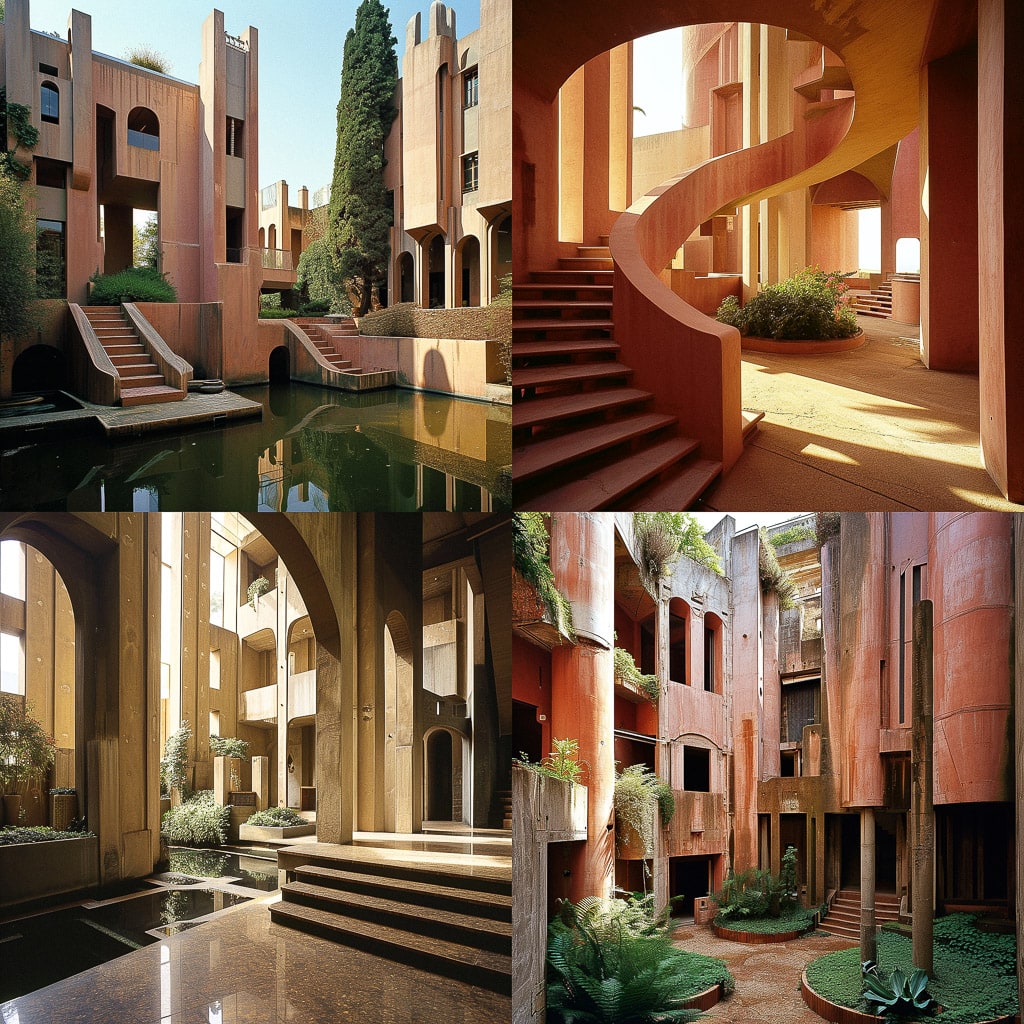 Бофилл использует разнообразные техники и материалы, чтобы воплотить свои идеи в жизнь. Его работы отличаются выразительностью и вниманием к деталям. Он стремится к созданию гармоничного и сбалансированного пространства, где архитектура становится не только функциональным элементом, но и произведением искусства.