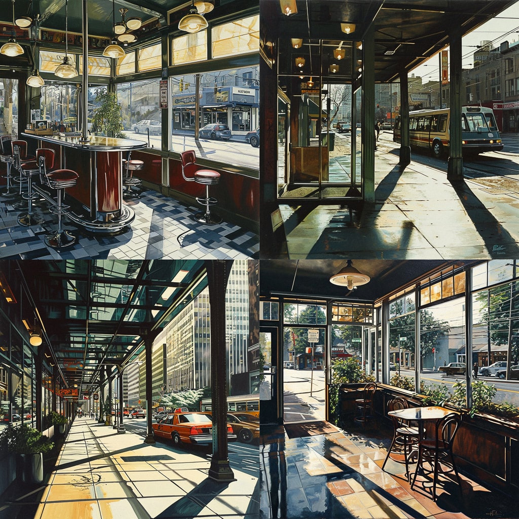 Ричард Эстес — известный американский художник, работающий в жанре городского пейзажа. Его работы отличаются реалистичностью и вниманием к деталям. Эстес мастерски передаёт игру света и тени, создавая иллюзию объёма и глубины.