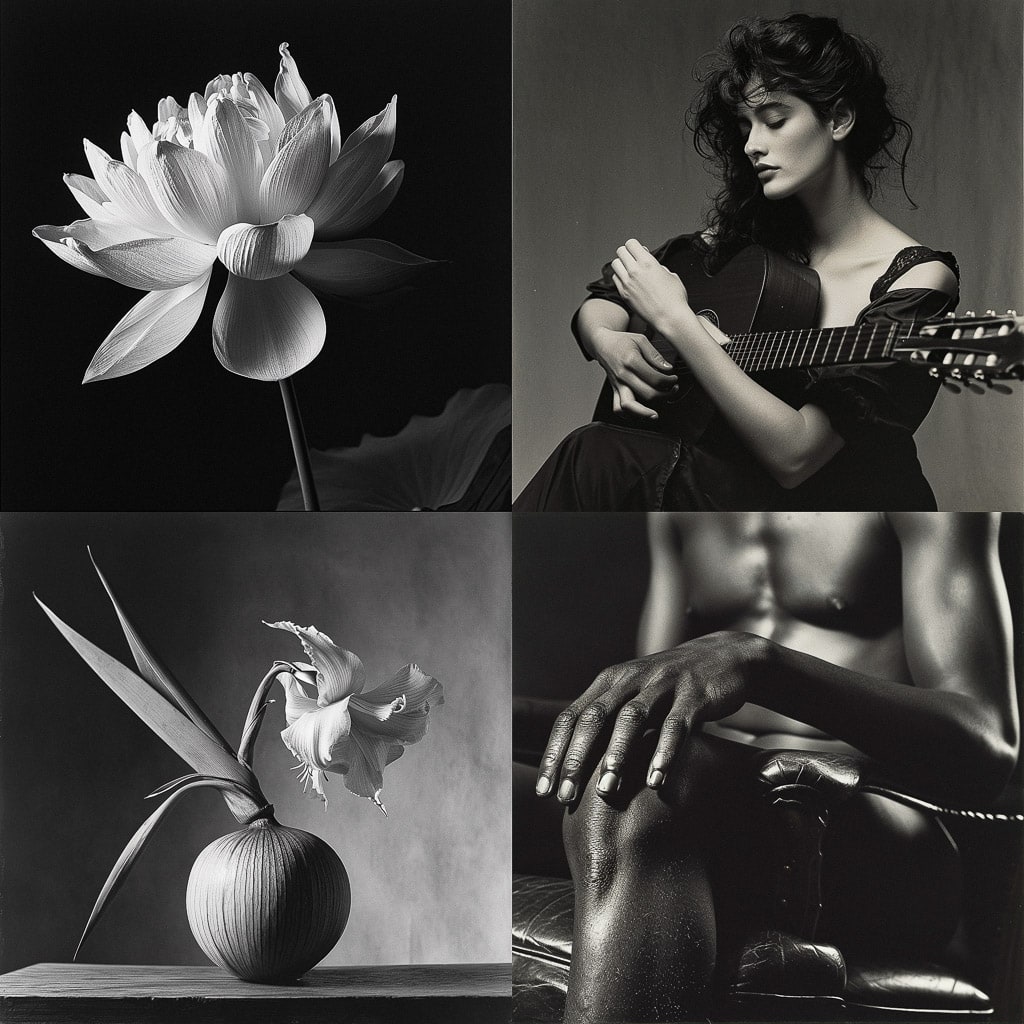 Роберт Мэпплторп (1946–1989) — американский фотограф, известный своими выразительными и провокационными работами. Его творчество охватывает различные жанры — от портретной фотографии до ню и цветочных композиций. Мэпплторп мастерски использовал свет и тень, чтобы подчеркнуть форму и текстуру объектов.