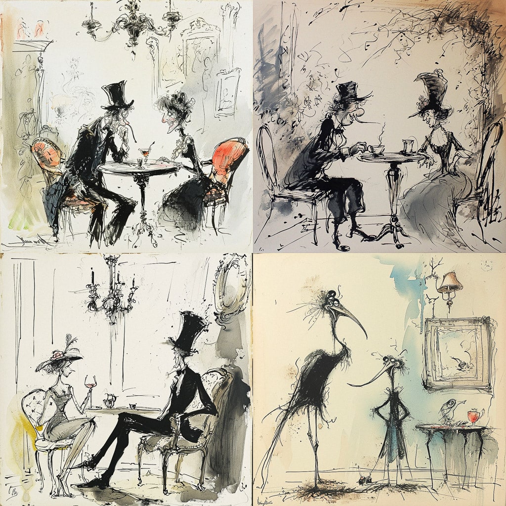 Ronald Searle — выдающийся британский художник-карикатурист и иллюстратор. Его работы отличаются остроумием и сатирой, а также уникальным стилем, сочетающим элементы реализма и гротеска. Searle известен своими иллюстрациями к книгам, а также политическими и социальными карикатурами. Его работы часто наполнены иронией и критикой современного общества.