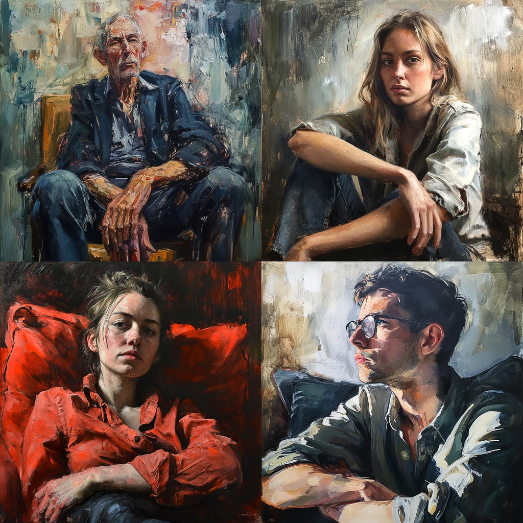 Sitting portrait может быть как одиночным, так и групповым, когда на картине изображено несколько человек. Этот жанр позволяет художнику экспериментировать с композицией, освещением и цветовыми решениями.