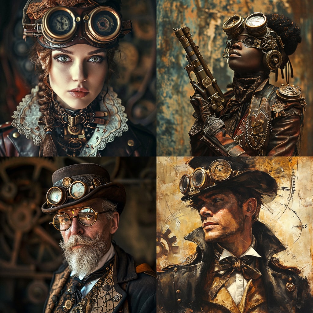 В стиле стимпанк можно создавать произведения в разных жанрах: от литературы и кино до живописи и скульптуры. Художники и дизайнеры используют винтажные элементы, такие как кожаные ремни, медные детали и шестерёнки, чтобы создать атмосферу индустриального фэнтези.