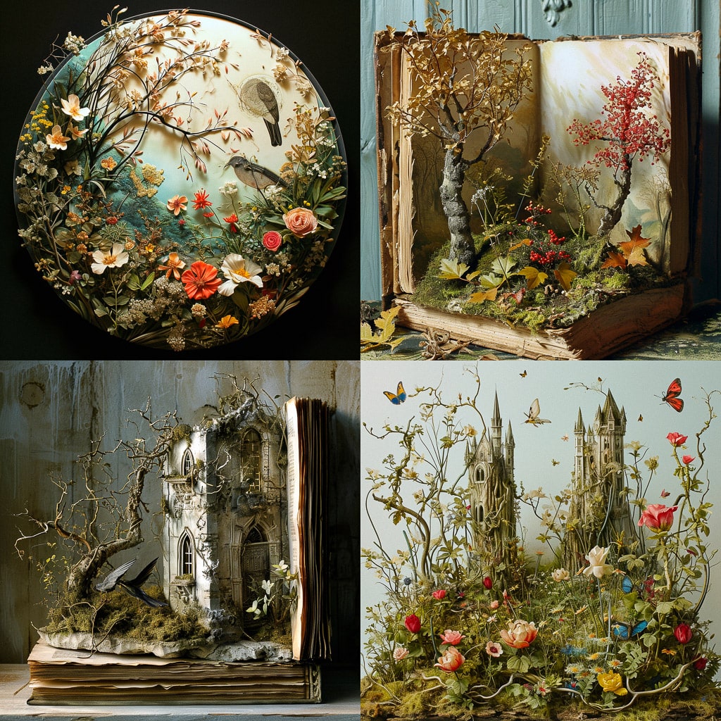 Художница использует различные техники, включая цифровые и традиционные методы рисования. Это позволяет ей добиваться выразительности и детализации в своих произведениях. Стиль Su Blackwell узнаваем благодаря уникальным композициям и ярким цветам, которые придают её работам особую атмосферу.