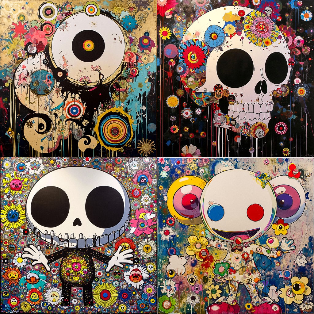 Стиль Мураками отличается эклектичностью и смелостью, что позволяет ему экспериментировать с различными техниками и материалами. Художник работает с живописью, скульптурой, инсталляциями и другими формами искусства, создавая многогранные и многослойные произведения.
