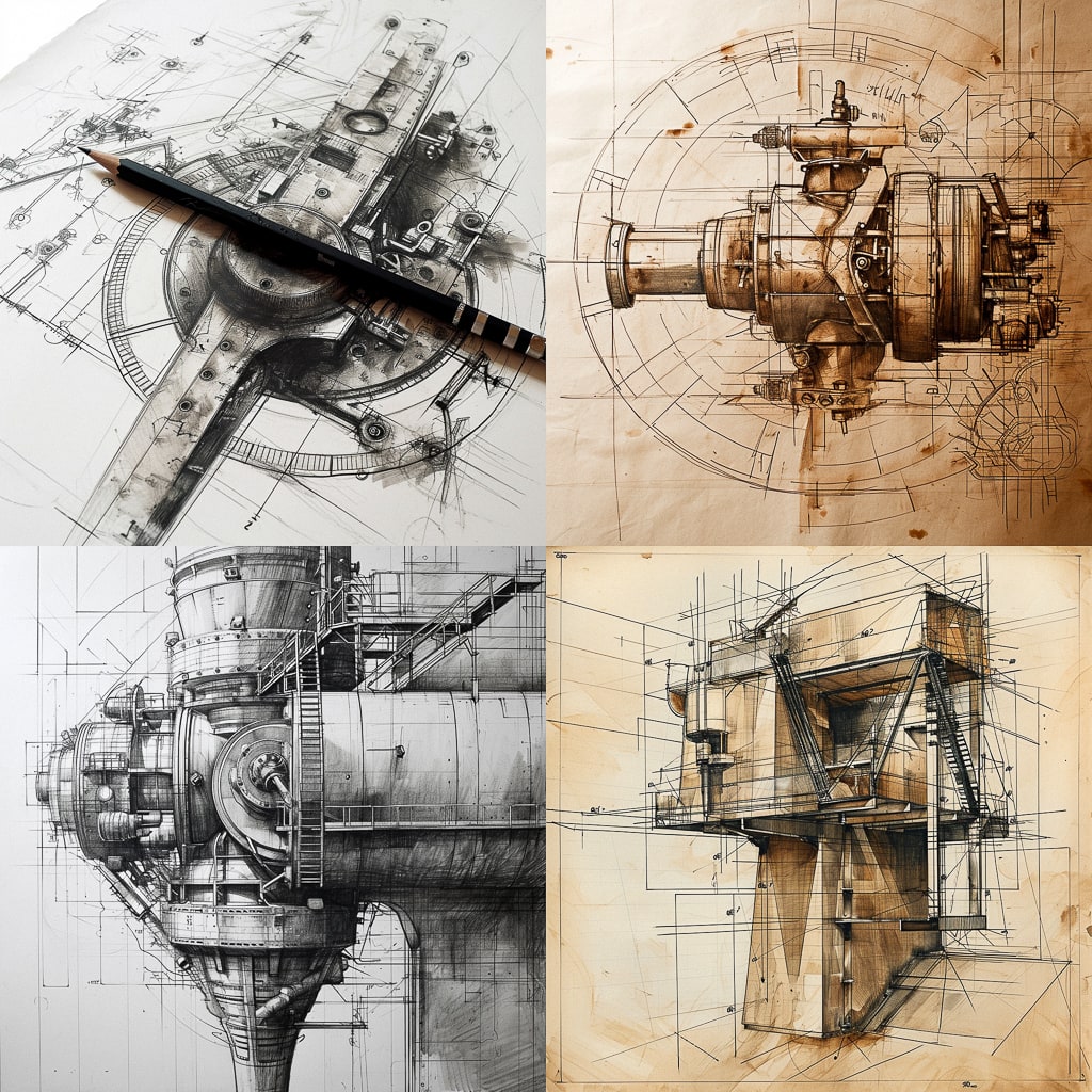 Technical drawing — это искусство создания точных и детальных чертежей, схем и графиков. Этот жанр широко используется в инженерии, архитектуре и дизайне для визуализации идей и проектов. Технические чертежи помогают преобразовать сложные концепции в понятные визуальные формы, обеспечивая чёткость и точность в передаче информации.
