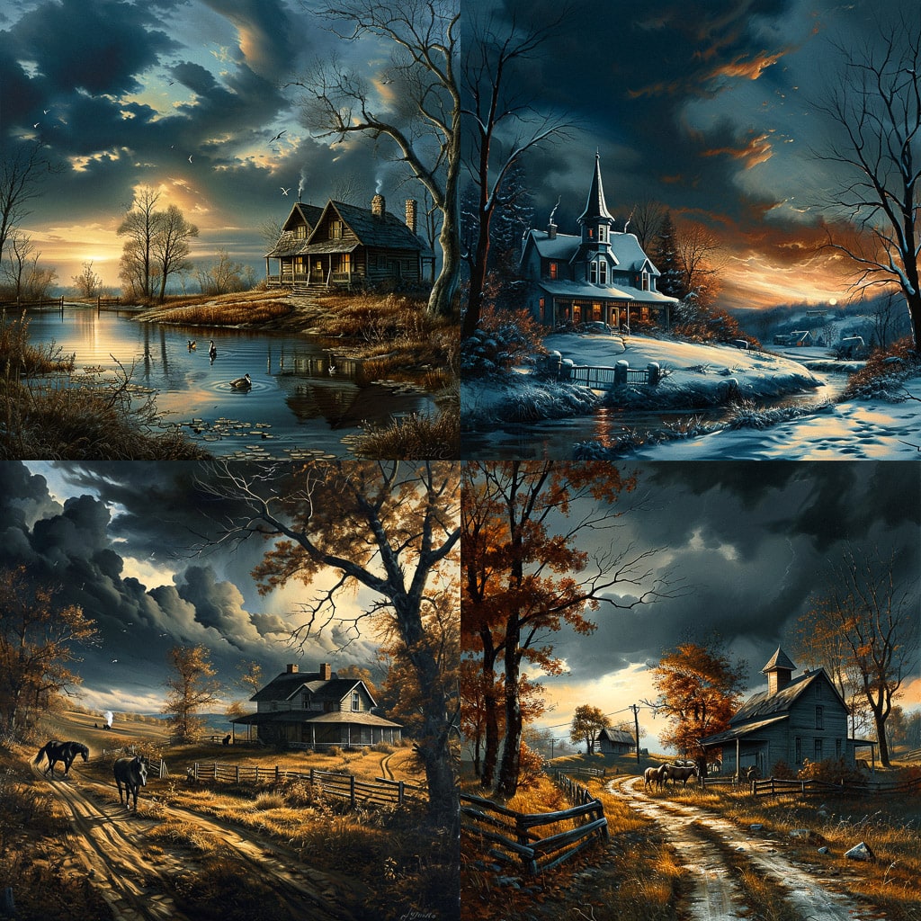 Художник часто изображает сельские пейзажи и природные ландшафты, создавая ощущение гармонии и спокойствия. Его работы отражают любовь к природе и уважение к её красоте.