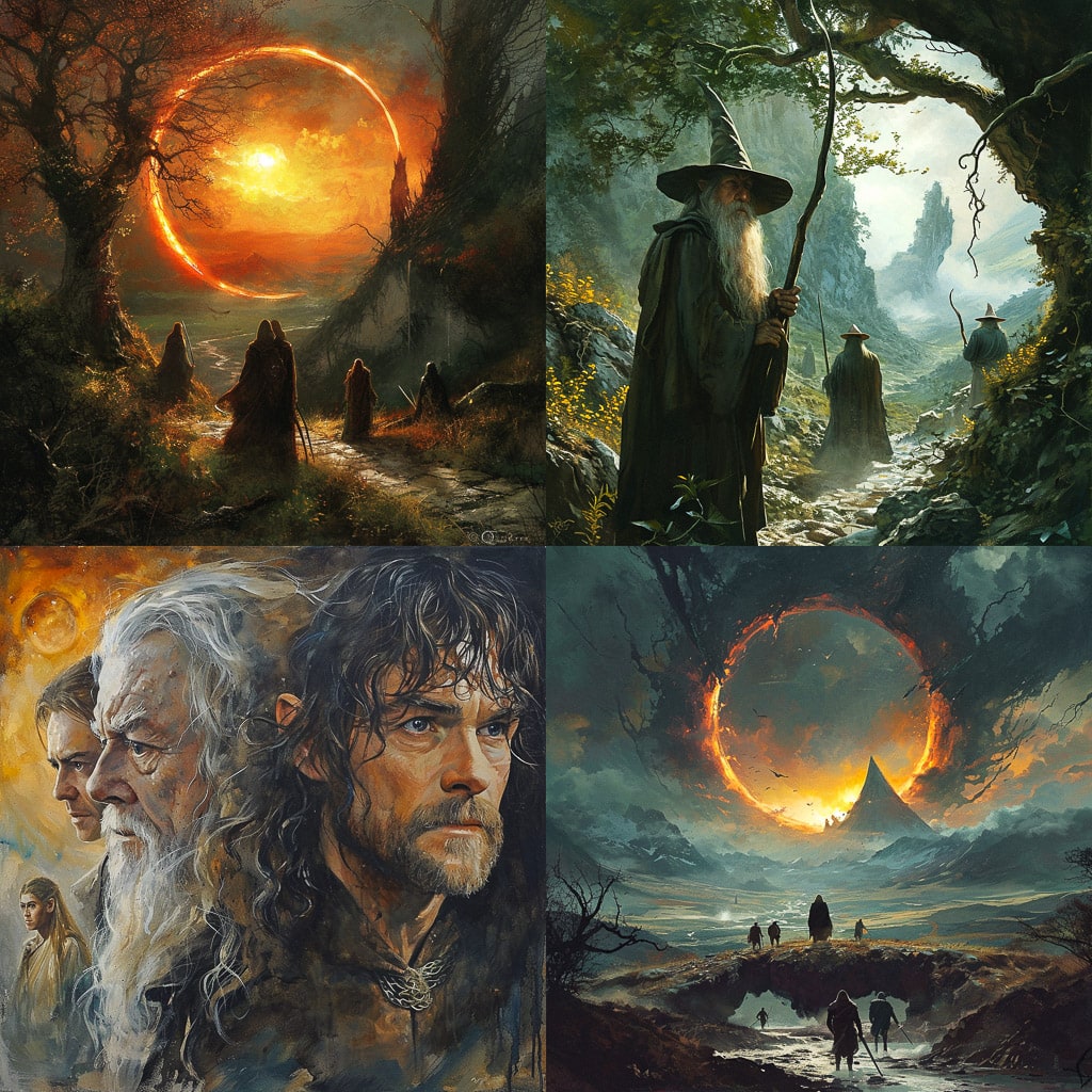 Иллюстрации и адаптации произведений по «Властелину колец» в разных жанрах и стилях искусства часто отражают мрачную и величественную атмосферу Средиземья, его мифологические существа и персонажей. Художники и иллюстраторы стремятся передать дух Толкина через свои работы, сочетая традиционные техники с современными подходами.