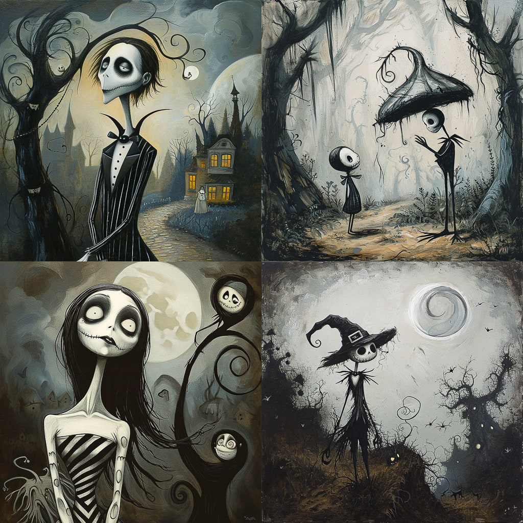 Характерные черты стиля Бёртона — мрачная атмосфера, гротескные персонажи и необычные визуальные решения. Он мастерски использует свет и тень, чтобы создать глубину и драматизм своих работ. Его фильмы и мультфильмы стали культовыми и оказали значительное влияние на современное кино и анимацию.