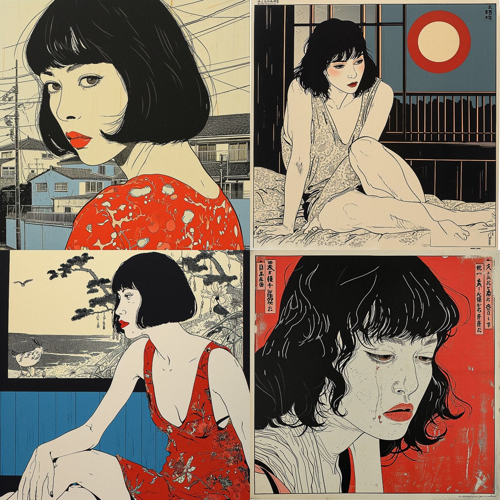 Тошио Саэки — известный японский художник, работающий в жанре традиционной живописи и использующий техники акварели и масляной живописи. Его работы отличаются яркими цветами и выразительными образами, часто вдохновлёнными природой и японской культурой.