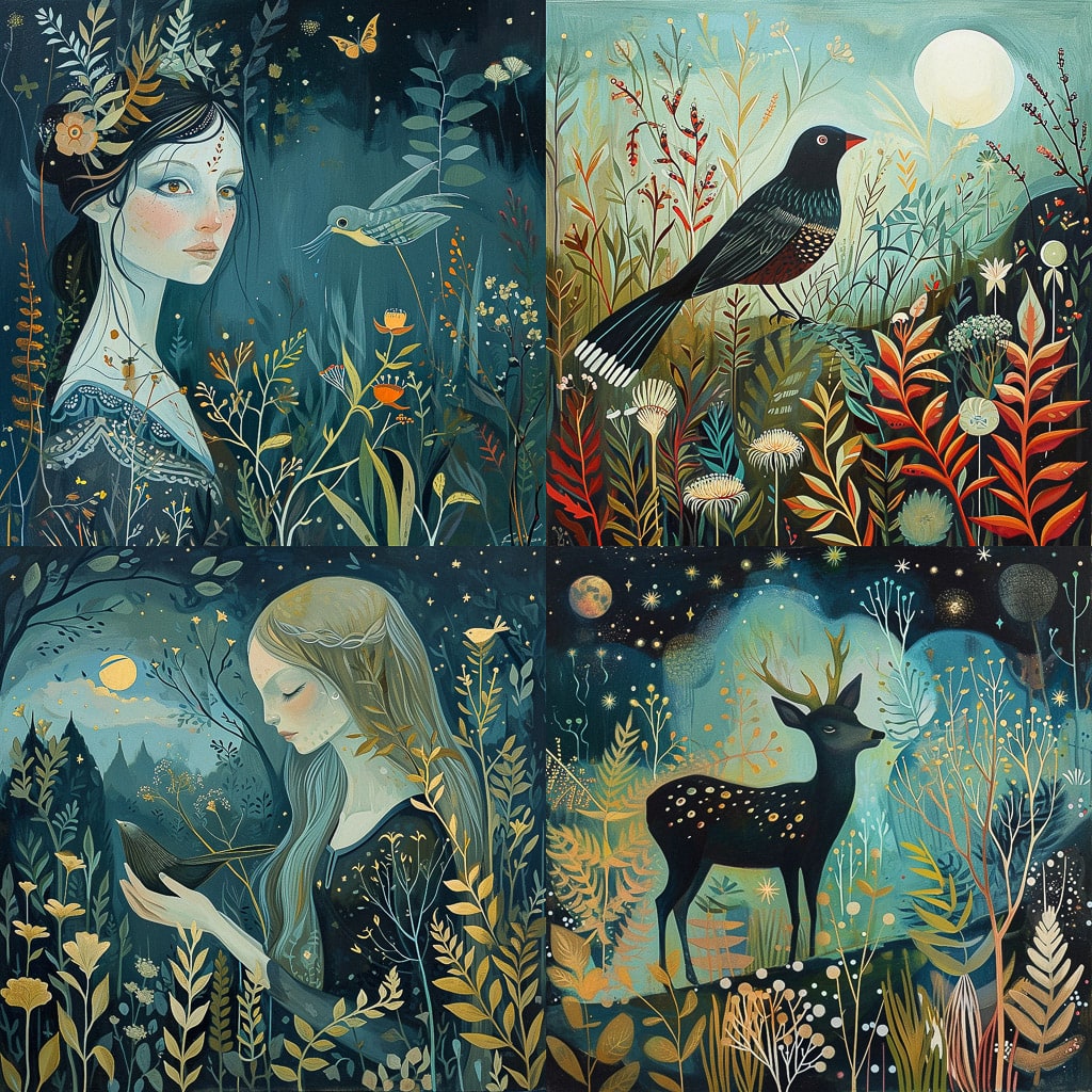 Гримвуд использует различные техники и материалы, чтобы достичь желаемого эффекта. Она может работать с маслом, акрилом и другими красками, а также экспериментировать с текстурами и фактурами.
