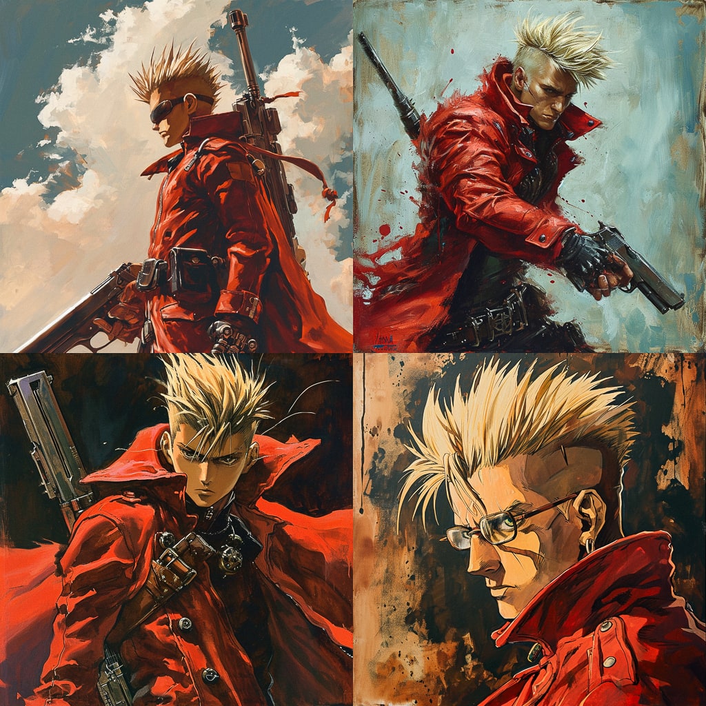 «Trigun» — это манга, которая сочетает в себе элементы научной фантастики, приключений и драмы. Она рассказывает о жизни и приключениях главного героя по имени Вэш Ураган, который обладает сверхъестественной способностью уничтожать всё вокруг с помощью своих рук.