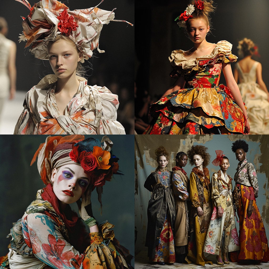 Её работы отличаются яркими цветами, смелыми силуэтами и необычными деталями. Vivienne Westwood не боится экспериментировать с формами и материалами, что делает её коллекции уникальными и запоминающимися.