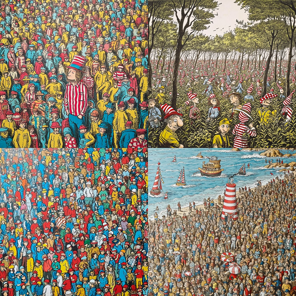 «Где Уолдо?» — это серия детских книг-игр, ставшая популярной во всём мире. В каждой книге читателю предлагается найти персонажа по имени Уолдо, который спрятан среди множества других людей и объектов на красочных иллюстрациях. Уолдо отличается яркой одеждой, и его поиск превращается в увлекательное занятие, развивающее внимательность и терпение у детей. Книги «Где Уолдо?» сочетают в себе элементы квеста и художественного развлечения, предлагая читателям погрузиться в мир ярких иллюстраций и увлекательных сюжетов. Этот жанр стал не только развлечением, но и способом обучения детей наблюдательности и умению концентрироваться.