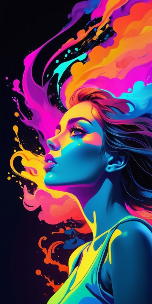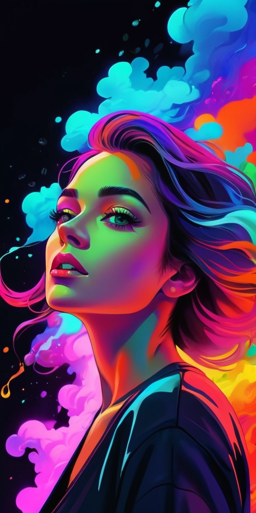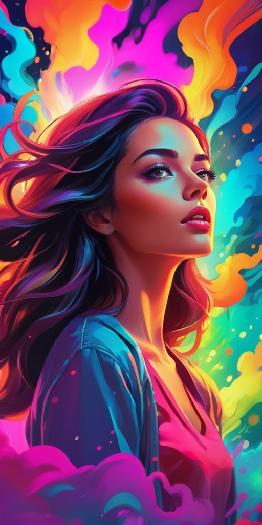 Этот промт представляет собой яркую иллюстрацию в стиле мультфильма. Он изображает девушку, которая видит мир во время галлюцинаций, находясь под воздействием наркотиков. Иллюстрация выполнена в форме сплеш-арта с разбрызганными неоновыми красками и психоделической атмосферой. Используются эффекты движения, чтобы добавить динамичности. Промт выполнен в лучшем качестве и подходит для использования в качестве обоев. Он имеет ультравысокое разрешение (UHD) и центрированное изображение. Используется искусство MSchiffer. Цвета в изображении плоские и яркие, сочетающие стиль цел-шейдинг. Используются смелые неоновые цвета с высокой насыщенностью, а черные чернильные линии придают деталям контрастность.