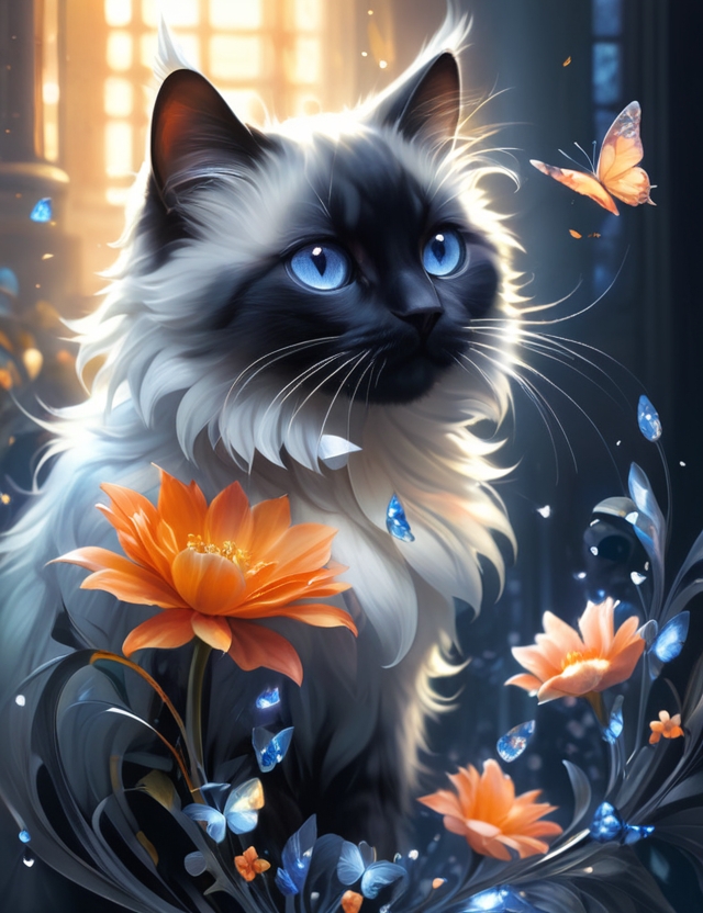 Добро пожаловать в волшебный мир, где создание уникального изображения в стиле UHD цветочного узора Рэймонда Суонланда становится реальностью. Этот промт предлагает создать впечатляющую цифровую иллюстрацию с изумрудными цветами, милым котом с голубыми глазами, небольшими бриллиантами и сапфирами, жемчугом, пушистыми белыми перьями, легкими слоновой кости завитками и гиперреалистичными деталями.