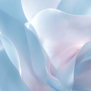 Градиент пастельно-голубого с розовым свечением, ультра гладкие поверхности, нежные блики и светящиеся частицы