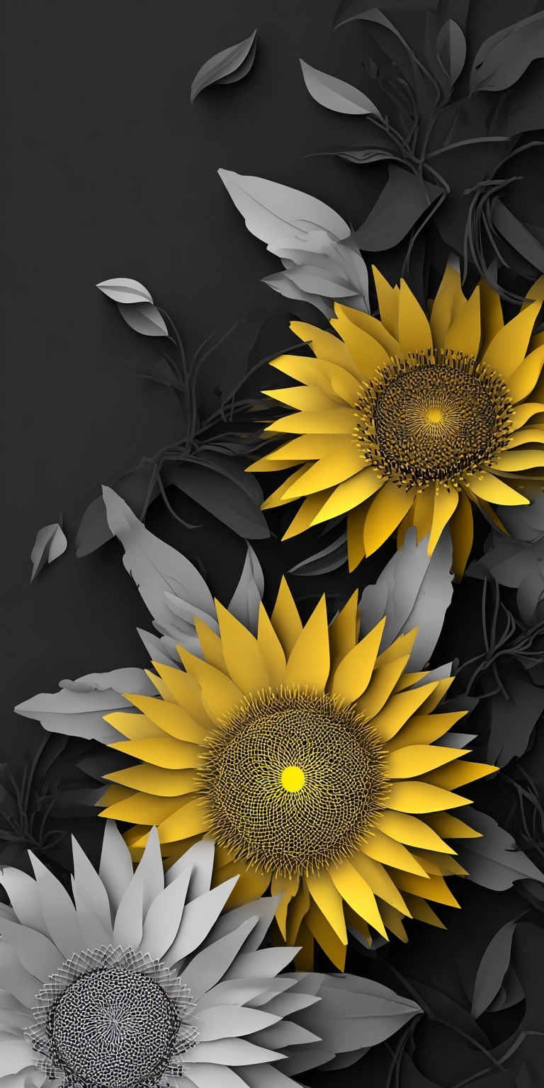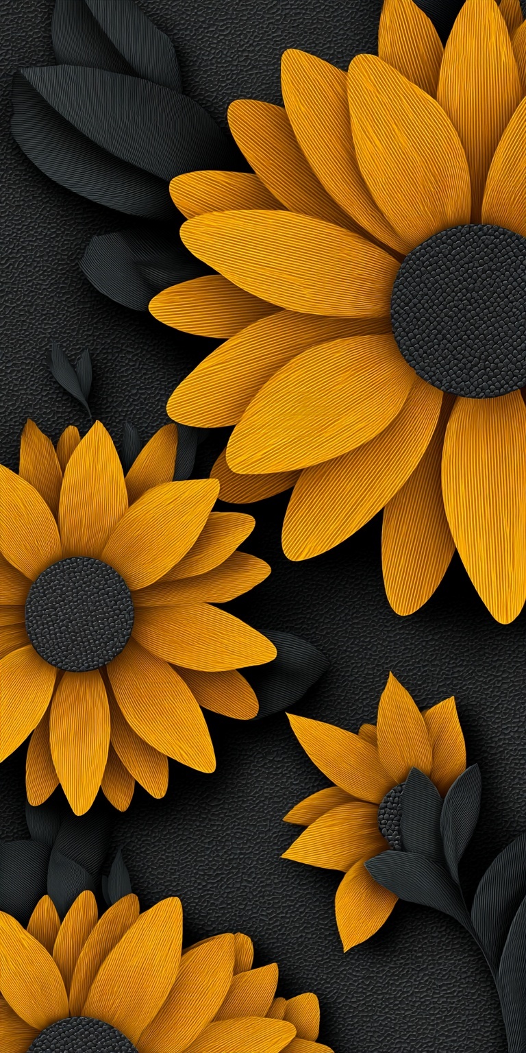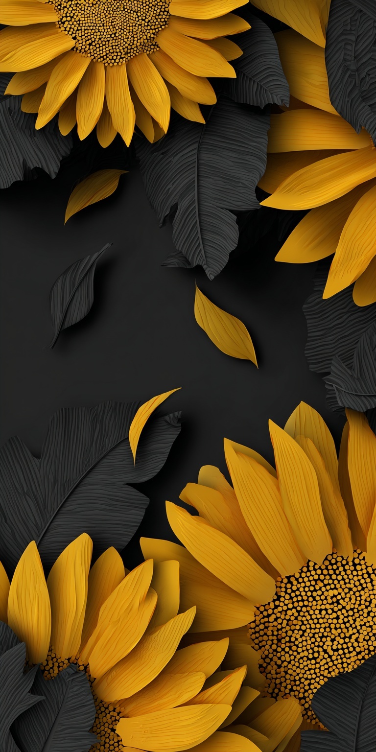 Изображение подсолнуха в технике бумажной вырезки на темном фоне.