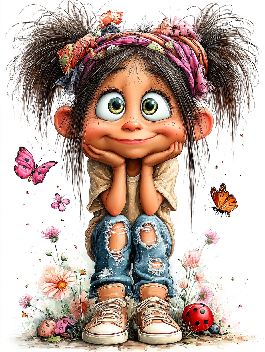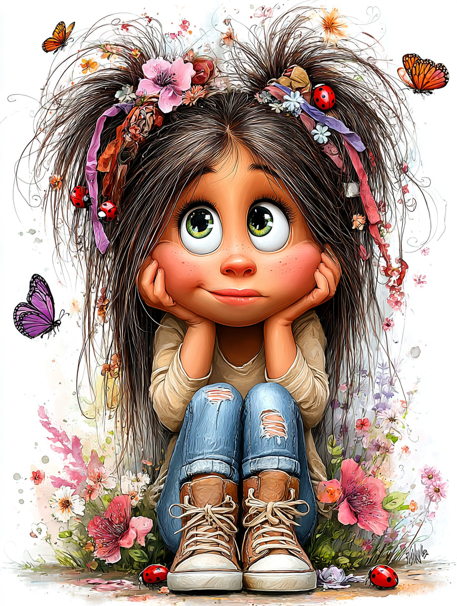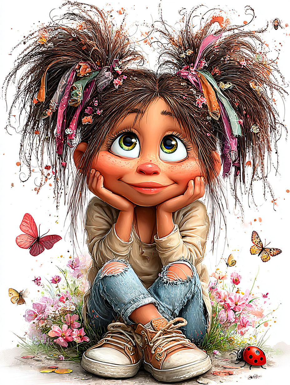 Сцена с самой забавной маленькой девочкой, в тёмно-каштановые волосы которой вплетены разноцветные ленты.