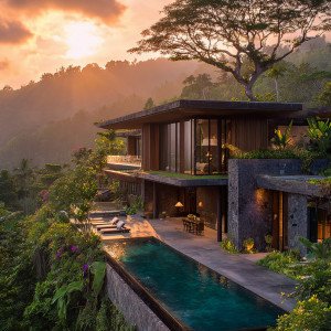Захватывающий архитектурный шедевр: роскошная современная вилла, в джунглях Бали.